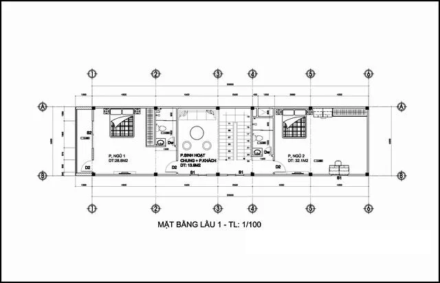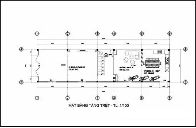 Bản vẽ thiết kế công năng mẫu thiết kế nhà phố 2 tầng 1 tum 5x20m kinh doanh Mẫu thiết kế nhà phố 2 tầng nằm trong khu đất liền kề đang cần giải tỏa để làm đường lớn; Nên giải pháp xây nhà là móng cao 75cm đến 1m; Lỡ sau này có làm đường mới dù nâng lên thì vẫn cao ráo thông thoáng. Bản vẽ mẫu nhà này phía sau còn khoảng đất trống hơn 1m giáp với dãy nhà trọ cấp 4; Và có lối vào ở cửa sau. Nên không gian thiết kế chia thành 2 không gian chính. Phía sau thiết kế 1 bếp và khách cho chủ nhà sinh hoạt riêng có cửa khóa trái. Phía sau không liên quan đến phần cho thuê mặt bằng phía ngoài. Tương lai gần vài năm sau khi không cho thuê có thể cải tạo thành 1 phòng ngủ trệt được. Tiện lợi là không phải đập bỏ hay phá vỡ kết cấu. Mẫu thiết kế nhà phố Diện tích tầng trệt có phòng kinh doanh thiết kế rộng 42 m2. Phòng khách phía sau cầu thang đi vào rộng hơn 20 m2 và bếp ăn rộng 19,6m2 có chỗ để xe máy. Còn lại cầu thang thiết kế rộng 2.2m chân cầu thang có vệ sinh và bồn rửa. Khác biệt nữa chính là không gian kinh doanh cạnh cầu thang trước mắt. Vách ngăn nhôm kính ngay phía ngoài đi vào để che cầu thang; Nhưng khi khách thuê có thể ra sau vệ sinh được. Bản vẽ không gian tầng lầu 1 nhà ống 2 tầng 1 tum 5x20m Không gian mẫu thiết kế nhà phố hiện đại 2 tầng 1 tum có diện tích sàn xây dựng hơn 110m2. Phía ngoài có thêm ban công lan can kính cường lực 10 ly khung thép. Tiện ích bên trong thiết kế có 1 phòng ngủ master phía sau rộng hơn 32 m2; Có phòng tập Gym và bàn làm việc, phòng thay đồ đầy đủ. Phòng sinh hoạt chung bố trí thiết kế cạnh cầu thang lối lên từ tầng trệt diện tích rộng gần 14m2. Có thể tiếp khách riêng tại đây hay thư giãn chuyện trò. Mẫu thiết kế nhà phố Ngoài ra ngôi nhà còn có 1 phòng ngủ với wc khép kín diện tích rộng lên đến 28,8m2 và 1 phòng vệ sinh chung tắm rửa tiện nghi. Khoảng thông tầng giếng trời ở ô hình chữ nhật có 2 đường chéo sát vách. Mặt bằng bản vẽ mẫu thiết kế nhà phố 2 tầng 1 tum cho tầng mái và tầng 2 Khu vực tầng 2 mẫu nhà ống đẹp có diện tích sàn xây dựng 90m2. Tính nếu đổ thêm 1 tấm thiết kế có sân thượng mái che ở bên ngoài rộng 27m2. Ở khu vực sân thượng, bản vẽ kích thước dưới đây tùy theo mục đích sinh hoạt; Có thể linh động thiết kế tiểu cảnh sân vườn xanh hay không gian thư giãn tiếp khách ngoài trời với treo trang trí các chậu Lan, hoa hồng leo, dàn cây kiểng… Nhằm tăng thêm mảng xanh cho kiến trúc nhà phố. Mẫu thiết kế nhà phố Không gian còn lại, Chị Mỹ còn thiết kế có thêm 1 phòng ngủ 18,2m2, một phòng thờ 21,6m2 và 1 sân phơi có góc để máy giặt phía sau nhà rộng 13,4m2. Có thêm 1 phòng vệ sinh chung ở đây. Trên tầng mái thiết kế bằng bê tông cốt thép, có tấm kính lấy sáng cho giếng trời. Đặt bồn nước Bình Minh 1500 lít hay năng lượng mặt trời nếu cần. Bản vẽ thiết kế nhà ống 2 tầng 1 tum 3 phòng ngủ 5×20 Mẫu thiết kế nhà phố đẹp được thiết kế theo phong thủy hướng chính Đông hơi ghé Bắc 8 độ. Hướng chính vẫn là chính Đông. Chị Mỹ lấy tuổi con trai chị sinh 1996 để xây bởi sau này ngôi nhà này có thể sẽ cho con trai. Chiều cao cốt tầng nhà này từ dưới lên trên lọt lòng 3.6m đến 3.4m. Phần móng nhà xây cao 1m dự phòng ở giữa có 2 giếng trời thông tầng; rất mát mẻ nhiều gió đón từ nhiều hướng bên ngoài vào. Hồ sơ bản vẽ mẫu thiết kế nhà phố 3 phòng ngủ có đầy đủ chi tiết từ điện nước kết cấu full. Chúng tôi chọn 1 vài bản vẽ chính như mặt đứng, mái, kích thước cầu thang, chi tiết cửa, ban công.. Ghép thành 1 hình ảnh để quý có 1 cái nhìn khái quát. Vì ngôi nhà đang trong quá trình xây nên không đưa hình ảnh bản vẽ chi tiết rõ ràng lên mạng được để giữ bản quyền cho gia đình chị.